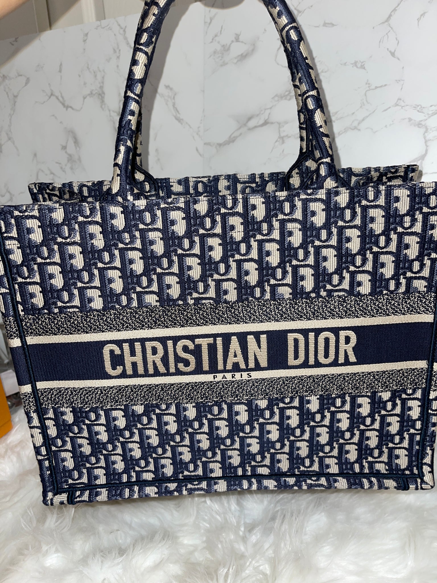 Introduced by Maria Grazia Chiuri, Creative Director of Christian Dior, the Dior Book Tote has become a staple of the Dior aesthetic. Designed to hold all the daily essentials, the style is fully embroidered with a blue Dior Oblique motif. Adorned with the 'CHRISTIAN DIOR PARIS' signature on the front, the medium tote exemplifies the House's signature savoir-faire and may be carried by hand or worn over the shoulder.