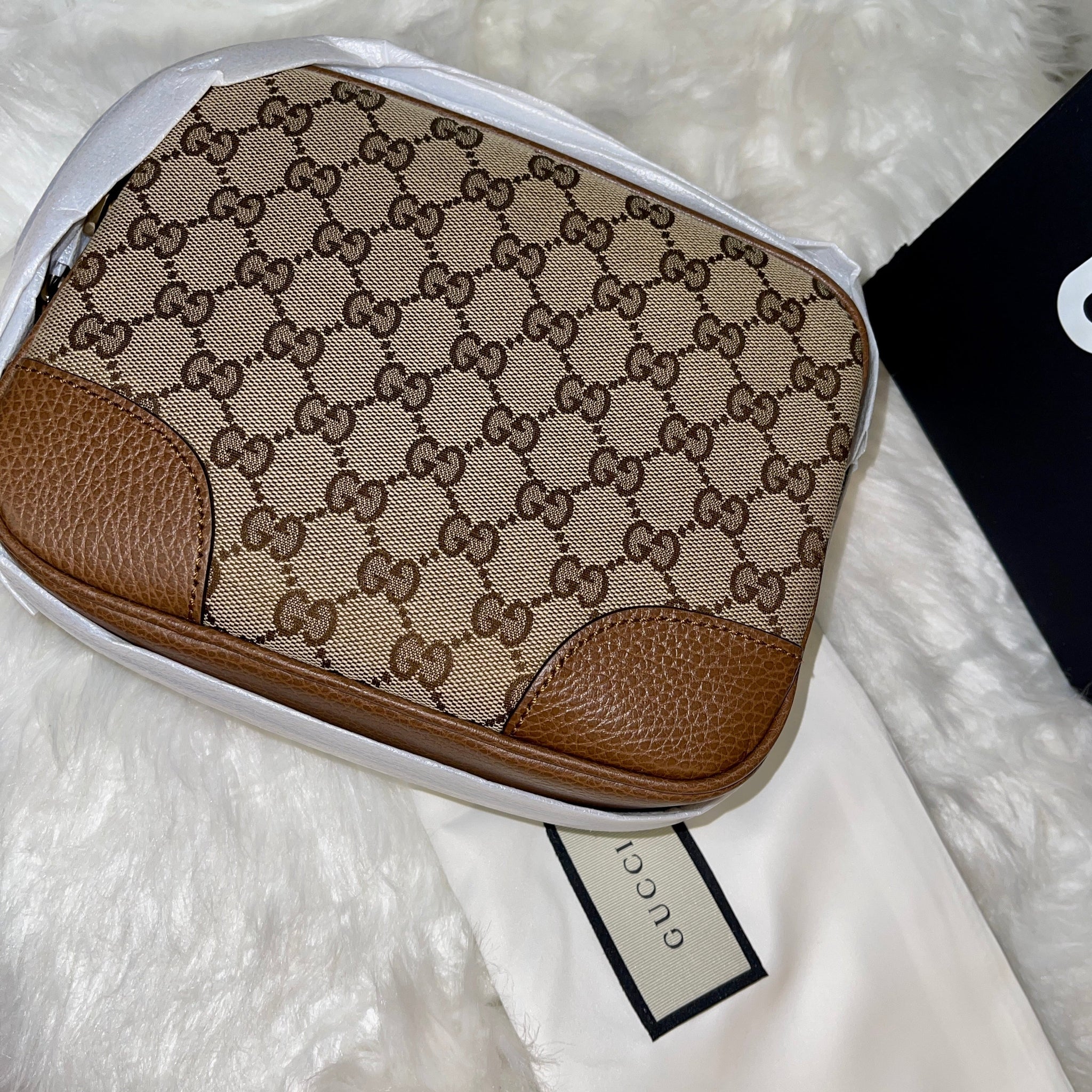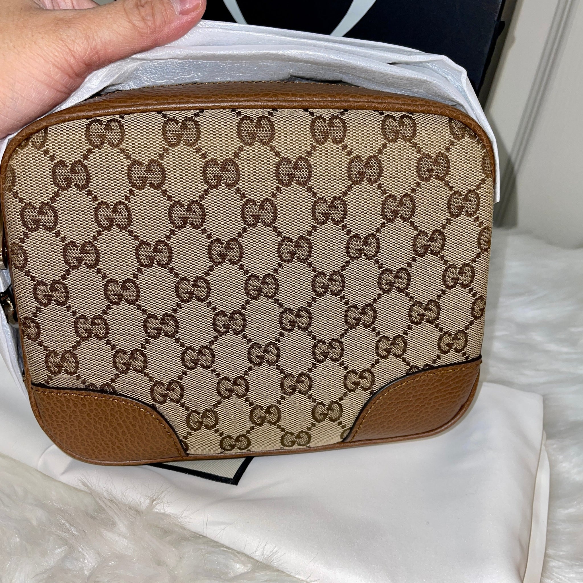 Cute, compact, and unexpectedly versatile. This Bree camera bag easily extends from a shoulder bag to a messenger bag with a built-in wallet functionality. Crafted in our iconic GG canvas and textured leather.